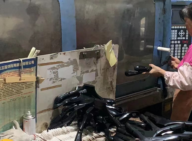 塑料衣架的制作过程是将模具装好,加料、然后塑化、充模、保压、倒流、冷却、脱模,然后安装五金件。